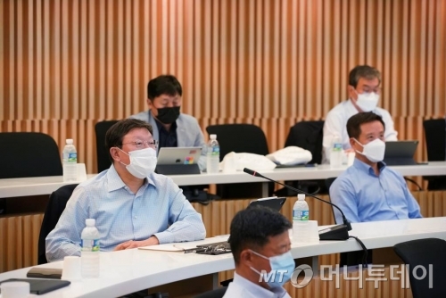 | 허태수 GS회장(왼쪽)이 17일 GS남촌리더십센터에서 열린 제2회 GS임원포럼에 참석해 코로나19 위기극복을 위한 방안을 경청하고 있다./사진제공=GS |