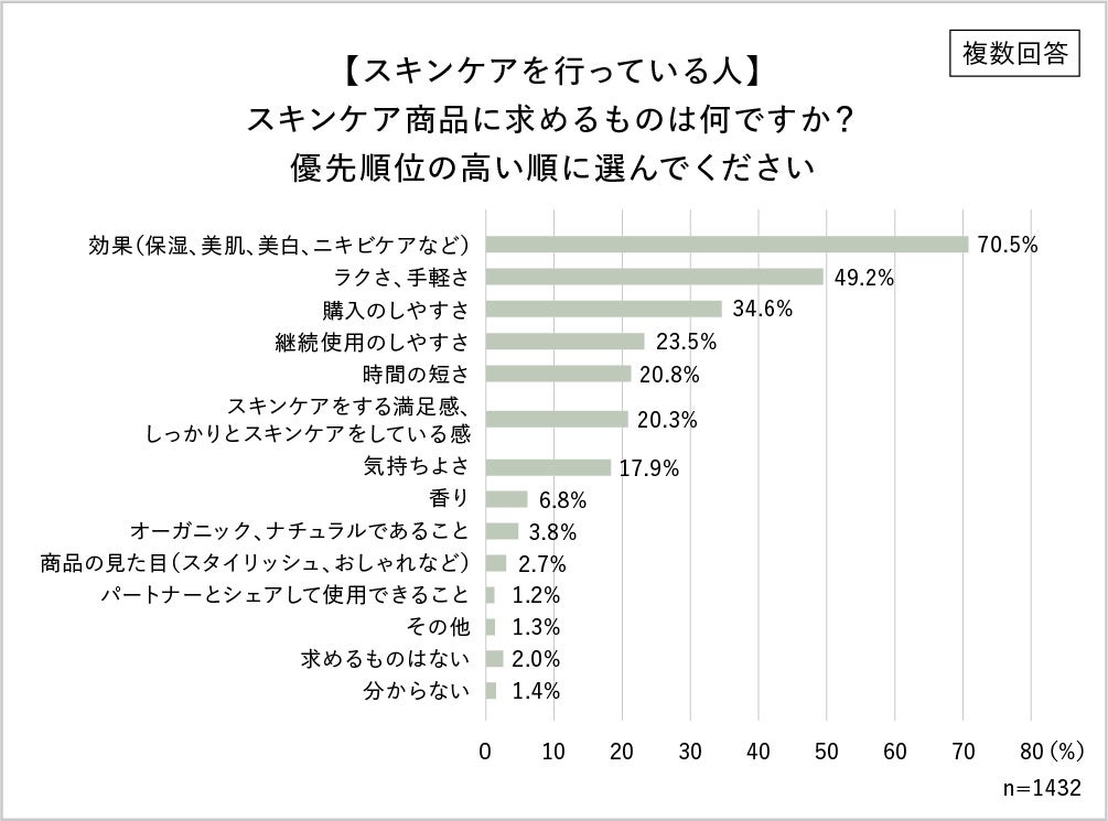 スキンケア商品に求めるもの「効果」「ラクさ、手軽さ」