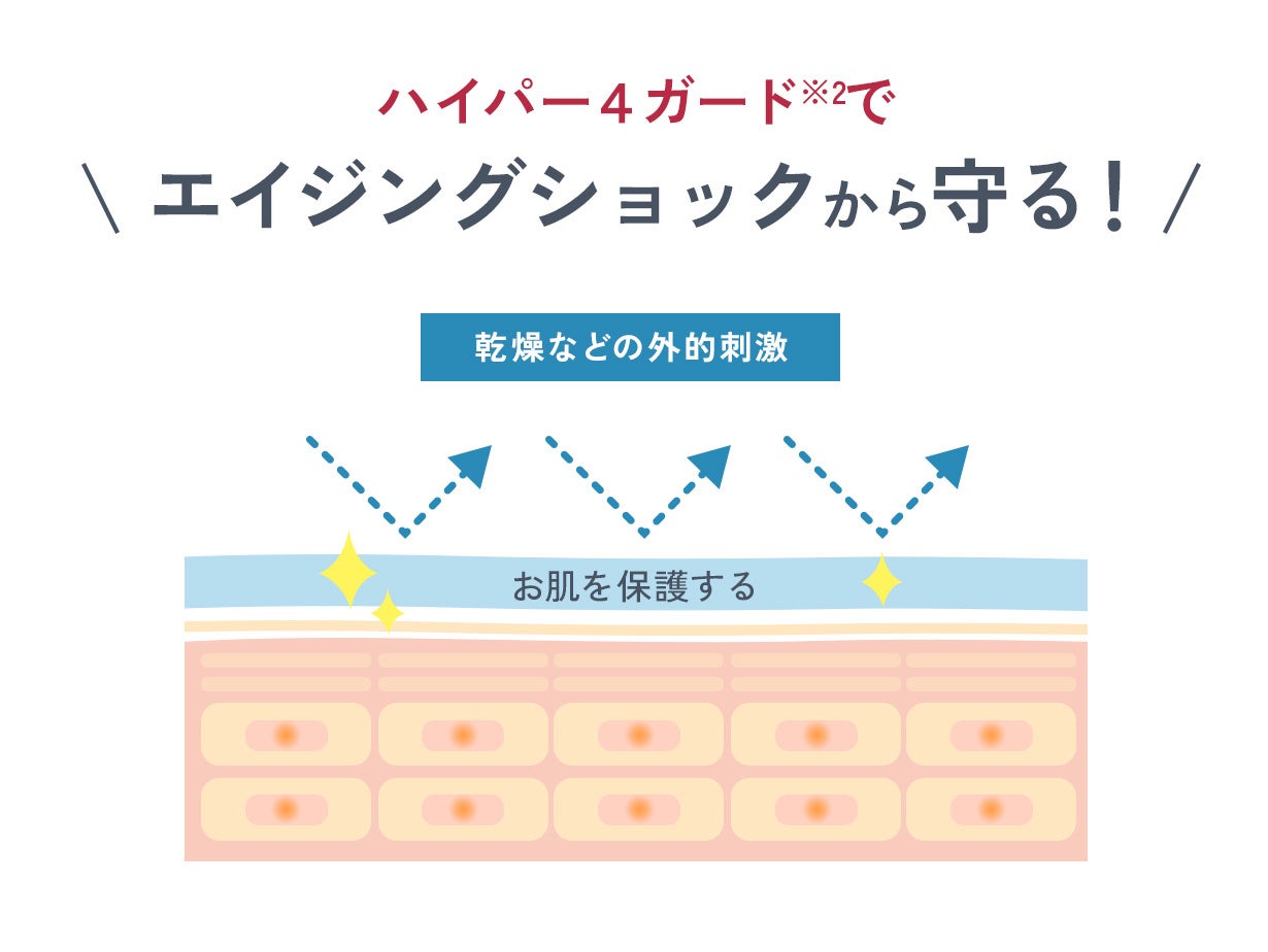 日常的に肌へダメージを与え、肌印象を変えてしまう環境ショック(エイジングショック)から守り、肌を健やかに保ちます。