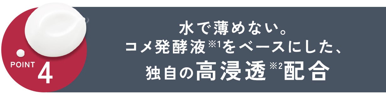 つけた後、潤いを感じさせる「コメ発酵液※1」を水の代わりにベースとして使用。有用成分を肌の奥※2まで送り届けるブースターのような使い心地で、保湿効果も高められます。