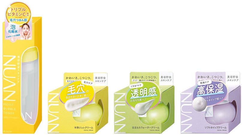 クラシエホームプロダクツは、美容貯金スキンケアの「NUAN(ニュアン)」からトリプルビタミンC配合の浸透泡で“毛穴つるん肌”へ導く「浸透バブル化粧水」を2023年9月25日(月)に新発売いたします。