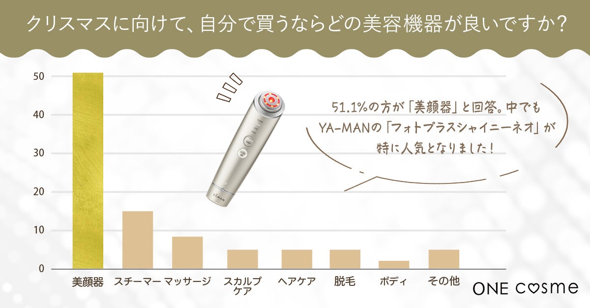 「クリスマスに向けて、自分で買うならどの美容機器が良いですか?」という質問には、51.1%の方が「美顔器」と回答しました。