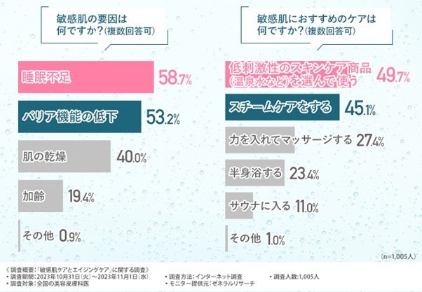 ●敏感肌の要因として『睡眠不足』『バリア機能の低下』の回答が多い。美容皮膚科医がおすすめするケア方法とは?