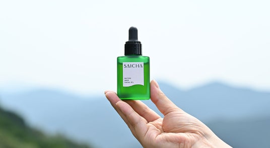 「采茶~SAICHA(サイチャ)」は、日本一のお茶の産地・静岡県の耕作放棄地に実った「茶の実」を使用し、2粒から1滴しかとらない希少で、かつ一番搾りを使用した、サステナブル&ナチュラルスキンケアブランドです。